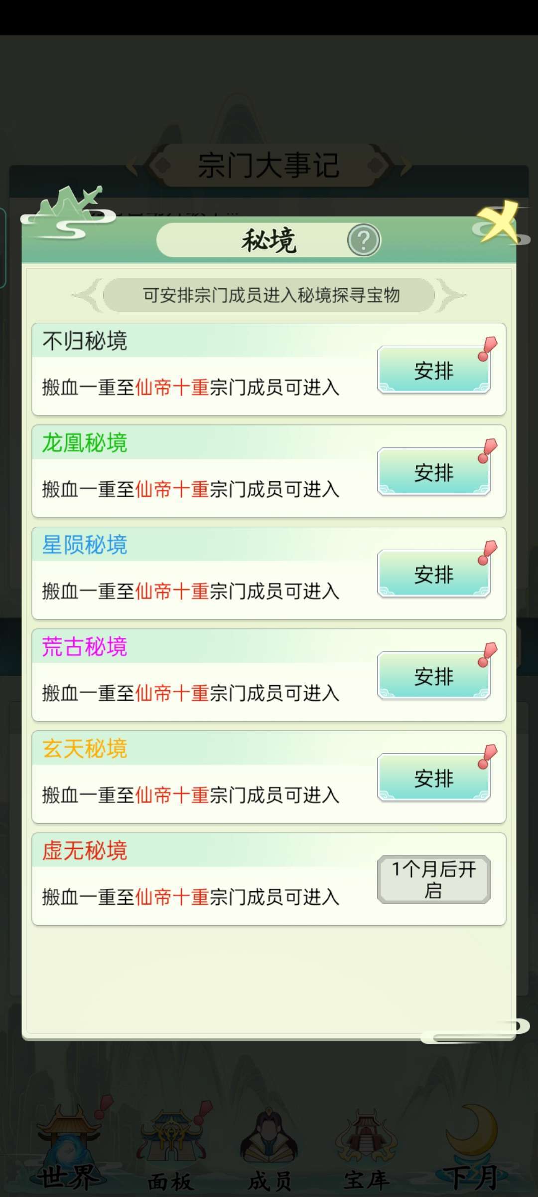 招收弟子 — 不管是凡人还是仙人,只要麾下宗门实力上来了皆有可能前来拜师...每段时间宗门的登天梯总会迎来不同的求道者,谁能有幸加入宗门就看你的决断。