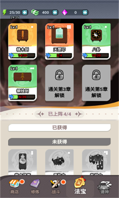 5、完成关卡后,可以获得丰厚奖励,并且会解锁新的空格,可以继续布置法宝。
