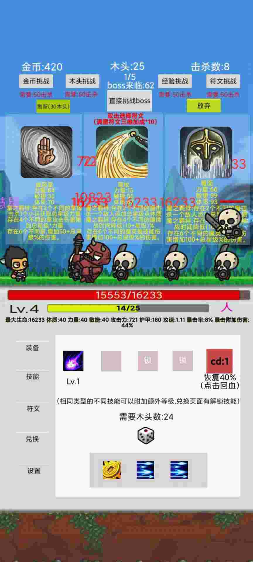 2、随着挑战的进行,玩家的等级得到提升,攻击力加倍
