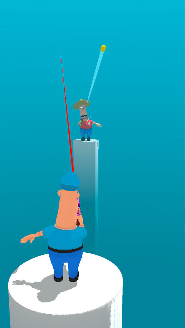 操控小角色拿起武器和对手进行对射,那一方先倒下就会输掉这场比赛