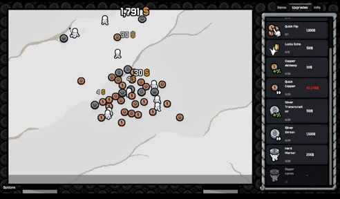 2、不断点击硬币来获得更多收益,点击右侧的物品可以解锁助手和更多的硬币。