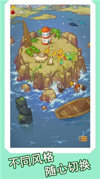 2.从简单的木屋到别具一格的海景房,从荒无人烟的孤岛到美丽富饶的海岛,通过挂机和点击方式升级。