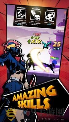 有多个不同的火柴人英雄可以选择,每个英雄都有不同的技能跟属性,伤害也不一样的。