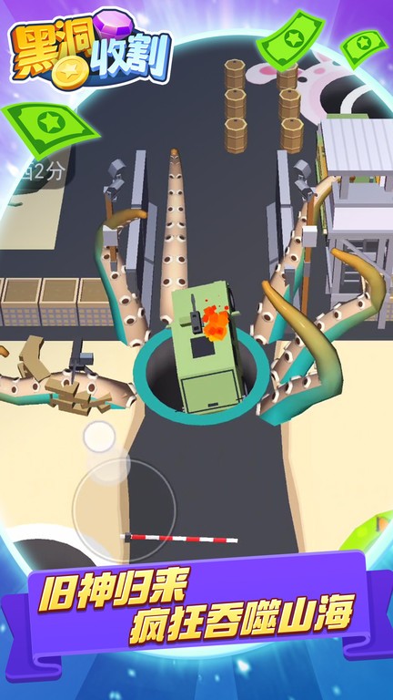 2.简单易上手,只需通过触摸屏幕控制黑洞移动,快速吞噬各种物品,让黑洞不断壮大。