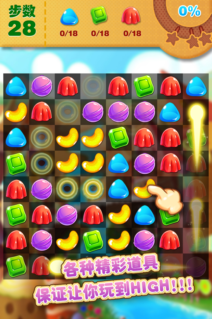 1.开心糖果消消乐,最有趣的快速简单消除手游,没有之手游采用闯关模式,难度以及玩法都不断的创新,在手游里游戏者需一鼓作气,才能攀上顶峰.