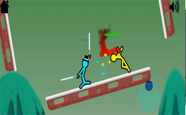 火柴人决斗双人作为一款以火柴人为主题的决斗手游。这个手游的界面很简单,但是画面简约清新,手游的主要内容是一个平台上,两个火柴人进行决斗。这个手游为操作,右边的虚拟按钮可以控制方向,在手游里游戏者则是需要控制火柴人将右侧的火柴人打败。火柴人的造型比较多,在手游没有开始的时候,在手游里游戏者可以挑选一个好看的角色进入决斗,而且手中的武器也是不一样的,有的是剑有的是棍子,怎样厉害就怎样玩,火柴人的头上还有血条,打中人会有出血的动画,非常有意思。