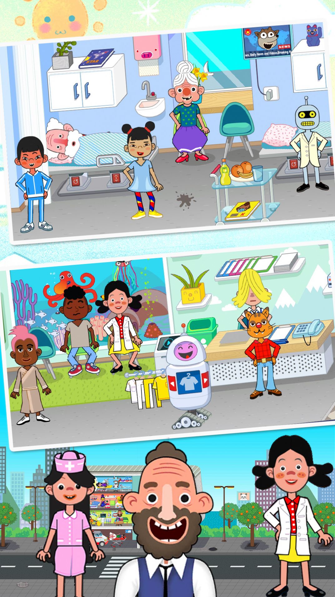 托卡小镇超级医院下载作为一款有趣的模拟类手游。在手游里游戏者需要建造一个非常好的医院,它的功能必须是完整的。你的任务是管理医院,使其能够正常运作。 为病患提供更多帮助,服务好他们。喜欢的朋友快来试试吧!