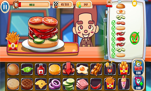 尽可能满足顾客的汉堡订单,赚到足够的钱让汉堡店的生意逐渐兴隆。