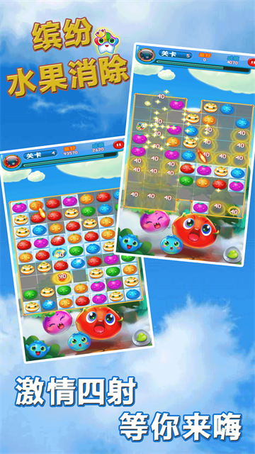 缤纷水果消除手游下载这作为一款非常经典的水果消消乐手游。超可爱的水果主题方块,每一次的消除都伴随着悦耳的音效,在手游里游戏者可以在游戏里获得不同的快乐,所有关卡都非常具有挑战性,在有限的时间里消除指定的水果数量才能够开启下一个关卡哦。