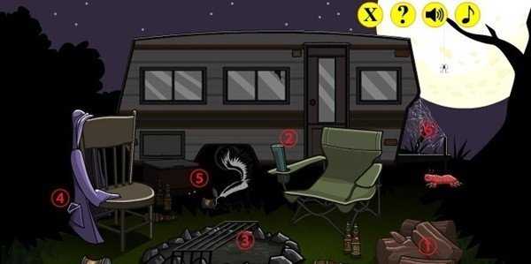 我们首先点击报纸再点火坑,点右下角的柴火再点火坑,然后点击左边的罐头盒放在烤架上,然后点击紫色衣服口袋里面的火机然后点火坑,等到臭鼬去吃烤架上的罐头后,点击臭鼬吃剩下的罐头和蜘蛛网,等蜘蛛下来后再点击蜘蛛网,然后点击臭鼬,等臭鼬被包裹后最后再点击一次臭鼬。最后点击有洞的车窗口,进入箱车。(直接点击臭鼬会出现一个好结局 )。