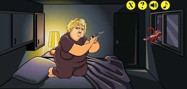 场景3:吃掉桌上养殖缸里的蝎子,这时候点击哪里狗都会叫,点击橱柜门,将热狗丢到地上,主人便以为是狗干的,将其撵出去。到窗外将狗吃掉,再回到屋里,点脏碗碟,点击顶端的柜子取出红色的罐子,点击香烟,取打火机点火,这时候就可以干掉老头了,他老婆会从门里开枪射击,两枪后就要逃出窗外,否则就死了;