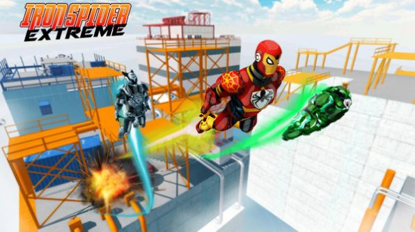 穿上你的超级铁蜘蛛服穿越城市,用绳子荡秋千,从推进系统收集硬币,然后起飞。