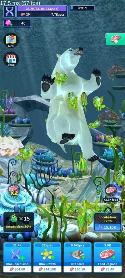 在游戏里你可以尝试到当一次鲨鱼的乐趣,你能在游戏里体验到捕食的恐怖与快感