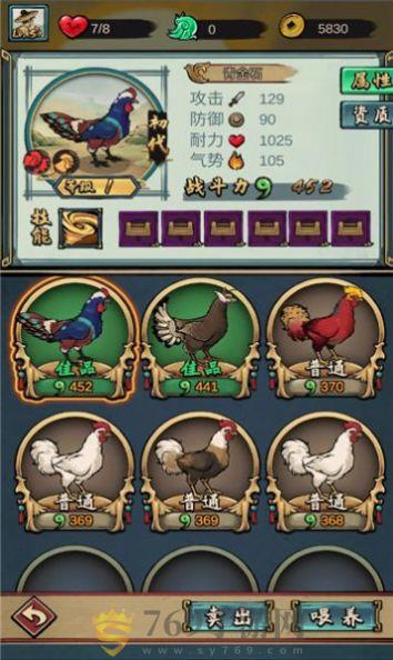1.根据种类不同,斗鸡在战斗环节中能发挥出的战斗力也有所区别。