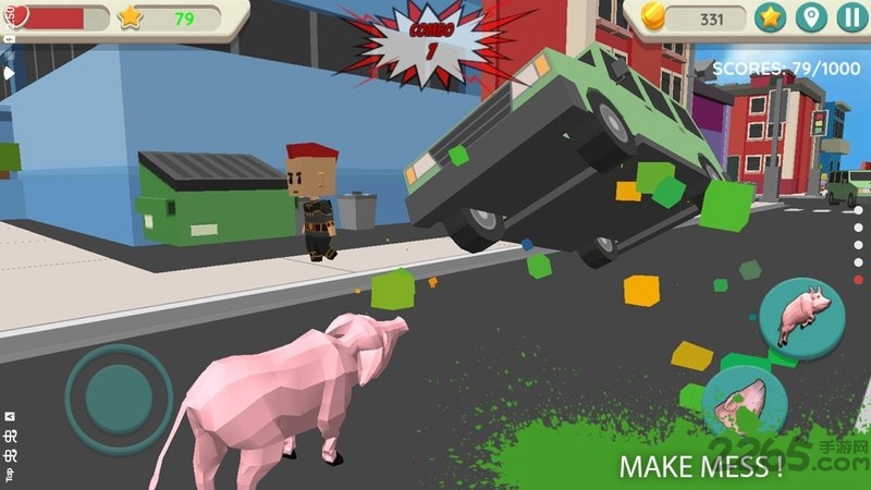 3手游还设计了很多种武器,小猪拿起武器还可以在城市中进行各色各样的破坏活动,遇到危险的敌人也能和他们进行战斗。
