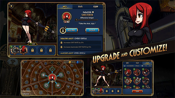 Skullgirls手游是一款很火爆的2D横板动作格斗游戏,中文译为骷髅女孩,游戏中你可以不断的在这里解锁不同的角色来进行1v1的战斗,从12个骷髅女孩中选择一个来进行战斗,攻击、跳跃、格挡、气技通过你的操作来进行合理的搭配,绝对是值得推荐给你的角色格斗竞技手游。