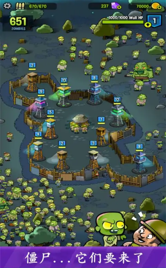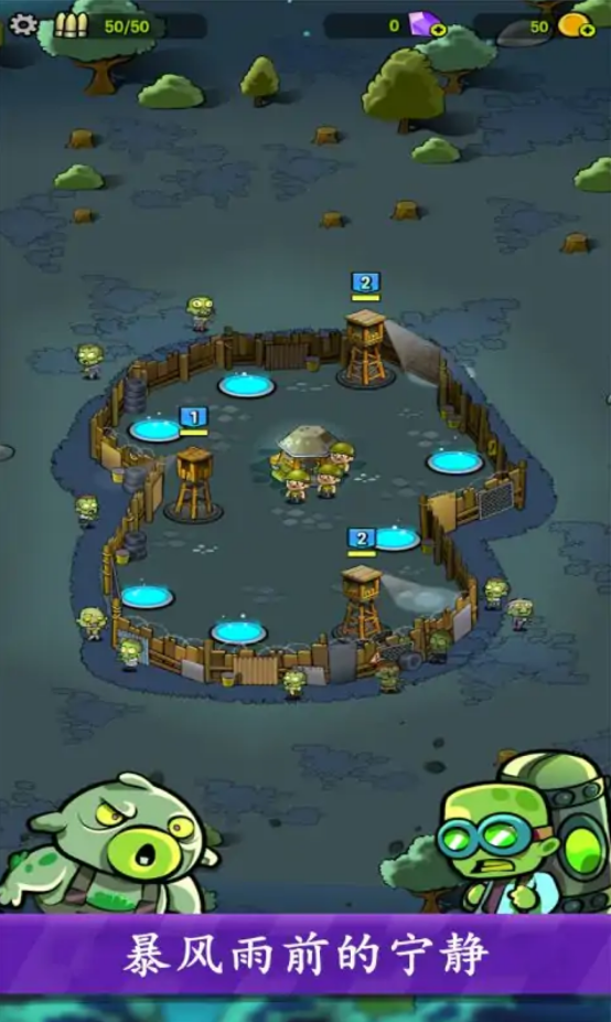 杀死僵户的僵尸生存冒险,合并和升级塔提高防御力。