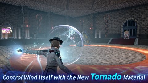 新魔晶石「龙卷风」所投掷出的风弹能将击中处周围的候补士兵们吹飞。