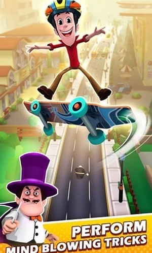 一个非常好的水平跑酷滑板类休闲手游。该游戏有很多滑板可供选择,各种关卡地图可供选择,游戏路上的各种障碍和危险,收集游戏的金条去解锁更多游戏内容,并且挑战敌人的各种攻击,然后使用酷滑板技巧去完成挑战吧。