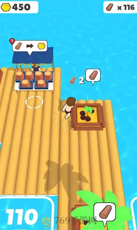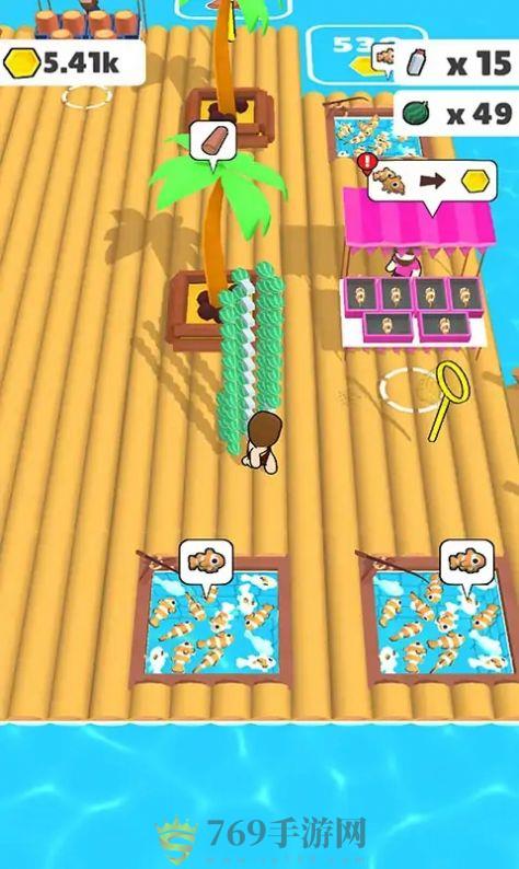 游戏者要不断的对小岛上的资源进行收集,将各种物品进行出售,来扩大木筏的范围,开启更多的农作物。