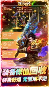 3、土豪装备,左手神兵灭霸手套等超多装备法宝。热血神装,神装技能焚天灭地斩全屏爆龙,奖励多多,轻松打宝,玩家还能邀请兄弟一起齐聚沙城,体验全服争霸的惊喜,完成任务。