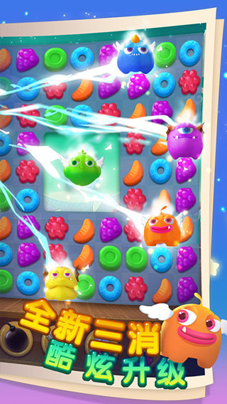 2.怪兽消消消作为一款能够为游戏者带来更多消除欢乐玩法的手游,让我们即刻出发,助力加布博士,召唤糖果精灵,来一次任性的粉碎消除尝试吧!