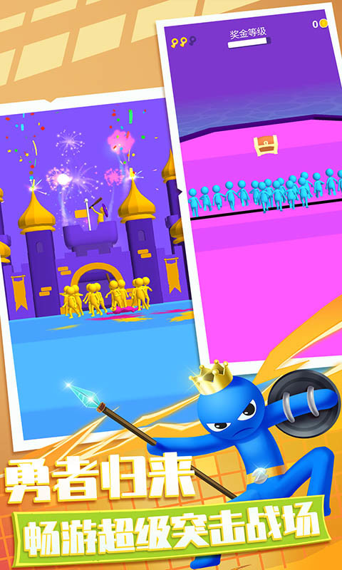 3、梦幻小兵跑酷游戏,只有获得丰富的道具和武器,才能成功征服城堡,然后成功突破关卡。