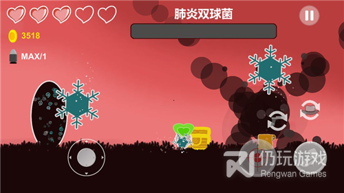 一款独立开发的动作类小手游。由于人类不良的生活习惯导致身体出现疾病,你将扮演一只人体内的白细胞,拿起武器,与可怕的变异细胞做斗争,只有这样才能拯救你的宿主——人类。