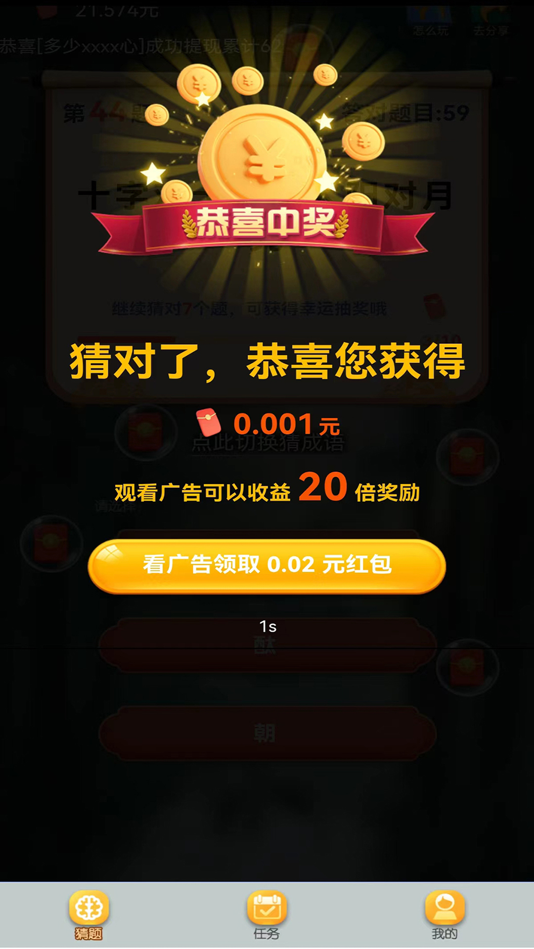 大家猜对了还会获得一些奖励猜的的题目越多,累积的大奖也会更加丰富;