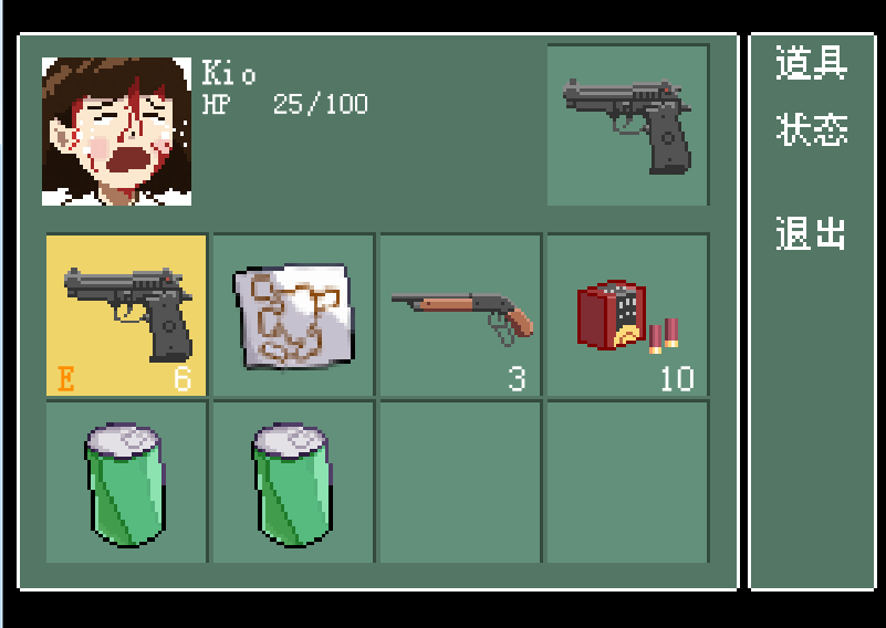 游戏的道具栏完全是向1代生化危机致敬。道具和道具的结合透露出浓浓的生化气息!在这部作品中一定会给你带来满意的体验。游戏中有很多对生化危机的致敬,从武器的装备栏到射杀僵尸的感觉,简直就是2D版的生化危机。所以游戏不仅仅是一个RPG,里面有很多动作元素,甚至是一个生存游戏。你需要找到弹药和武器,在没有子弹的时候逃跑,节省弹药,避免与怪物战斗。