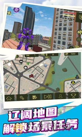 点击右侧这个按钮,英雄人物就可以直接变身成为一辆汽车开始跑酷追击敌人,再点击一下就可以变身机器人展开战斗。