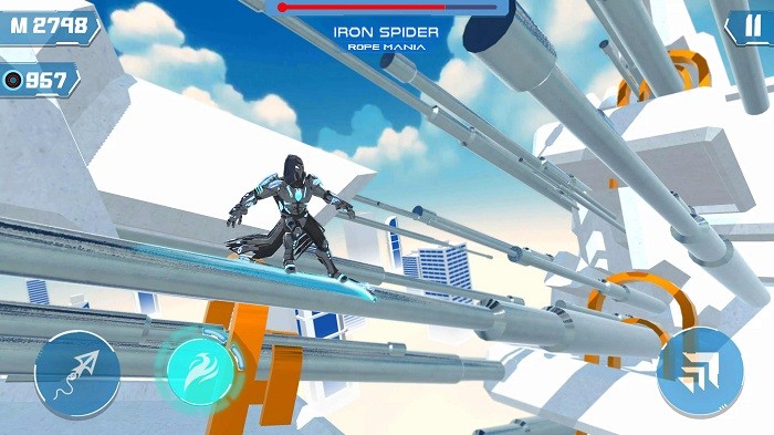 2.独特的铁绳技能,让你自由攀爬、飞行,甚至使用超级力量,成为无敌英雄。