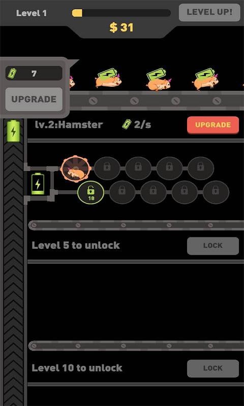 通过跑步机运行来发电,仓鼠们努力工作以挣取高工资,给游戏者带来满足感和成就感。
