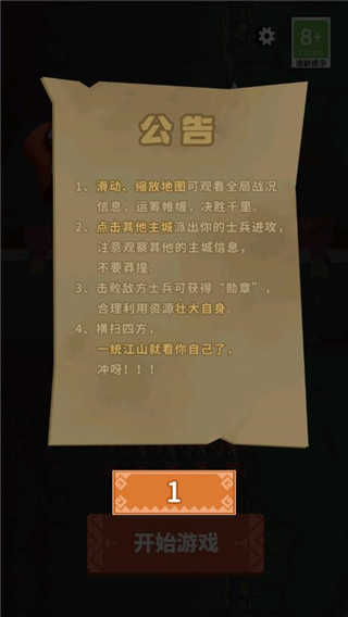 3、开局先存500金币,收集资源升级资源里的强化人口提升,前期6个兵,可以做到人数压制。