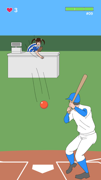 在这部作品中玩家需要扮演一名击球手,而你需要面对的是各种千奇百怪的投手们,比如说猫、大象、巨人、烤贝壳、自由女神像、游戏机被妈妈藏着的倒霉孩子、经常客串的魔术师Mr成功等等。尽管他们的投球方式各种各样,但你只需要盯准棒球,找准时机点击屏幕,狠狠打出本垒打,让全世界观众为你而喝彩。