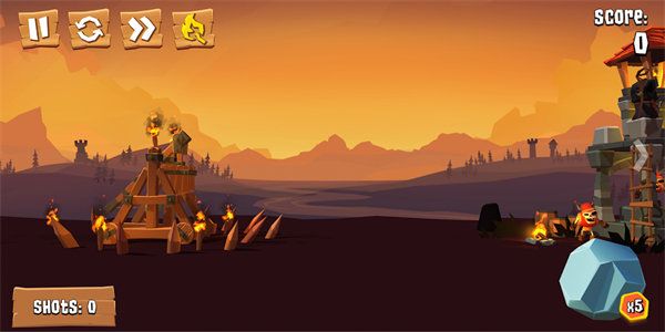 3.必须使用唯一的工具投石机,在手游里游戏者可以收集各种资源来为自己的投石机填充原料,增加火力