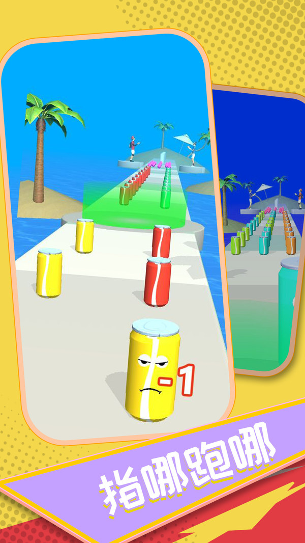 1游戏者将控制酒水参与跑酷,必须捡起与自己颜色相同的酒水才能够增加。