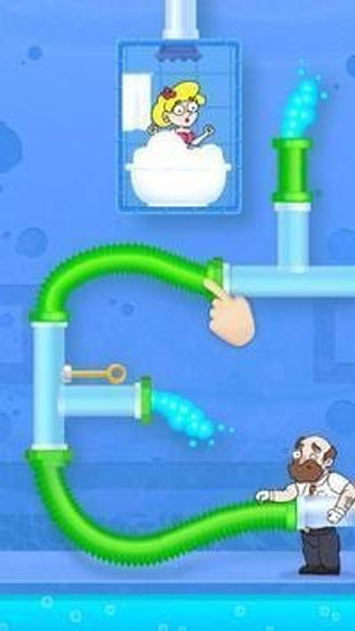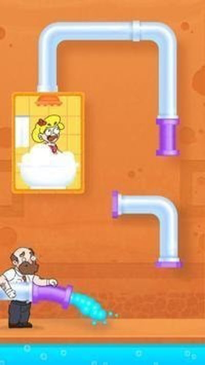 按照正确的步骤拉出起点,帮助女孩避开管道中的障碍物并连接管道。