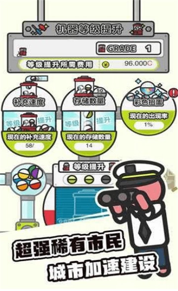 1.转动扭蛋机获取新市民,随机性带来无限可能,开启更多独特角色丰富城市生活。