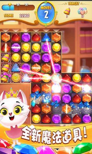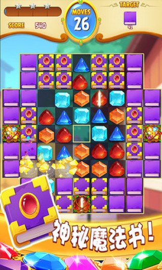连续消除你获得游戏奖励会翻倍的增加,当宝石卡住的时候,你可以使用神奇的魔法书道具。