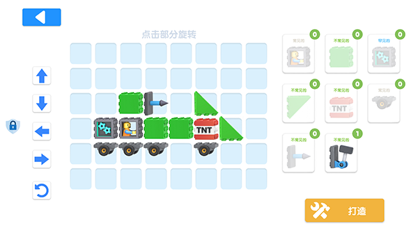将右边部件拖动到左边图纸上进行自由组装,组装出自己喜欢的的强力战车即可。