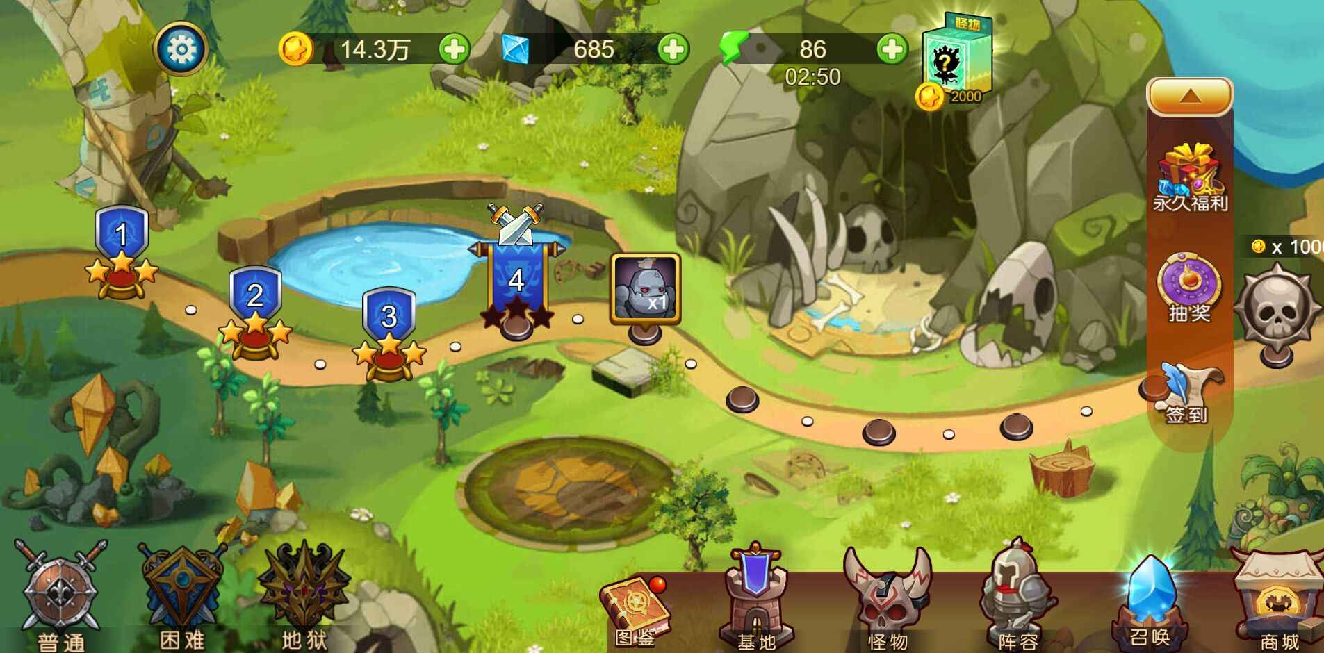 2.消灭更多的boss,快速提升等级,还要强化每个英雄的属性。