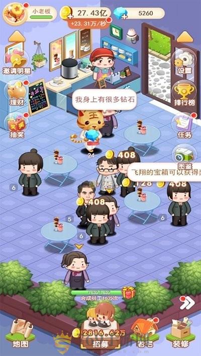 游戏者可以开不同类型的店铺,里面的店铺类型,整个手游的玩法很精彩。