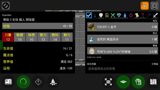 展示了角色所有的属性数值,玩家可以从此了解到饥饿度等重要信息;