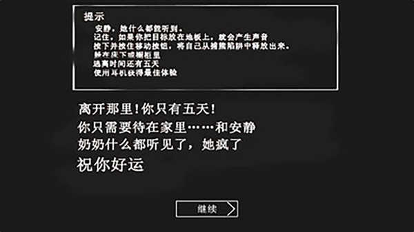 在第二天时出生房的门会被锁,所以需要扔花瓶或推倒桌子吸引奶奶过来,然后躲进床下或衣柜等奶奶离开。