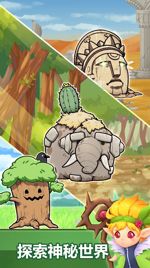 1、新鲜的卡通风格画面,玩家将成为英雄的世界,在幻想的土地上享受冒险,寻找武器加强自己。