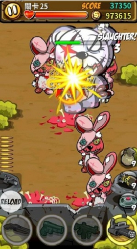2,有无数可爱的僵尸熊和兔子冲进来,选择你的武器或炸弹来击败入侵的僵尸,通过升级你的武器和购买弹药来增强你的火力。