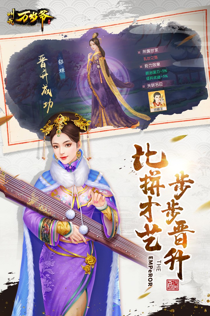 大权在握,怎可没有美人相伴?游戏的妻妾系统将准备各种环肥燕瘦的美人任君采拮,一顾倾人城,让你享受莺声燕语的齐人之福。无论是温柔贤淑还是妩媚动人,你都可以根据自己的喜好选择妃子,享受后宫佳丽的陪伴。