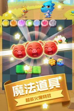 风来风去之爱消除中简单有趣的策略消除玩法,海量精彩的关卡设计,多种强力的魔法道具,满屏炫目的技能特效,唯美可爱的游戏画风,清新动听的背景音乐,更有火爆的转盘福利与闯关奖励! 拯救森林已刻不容缓,快来和小恐龙阿风一起并肩战斗吧!