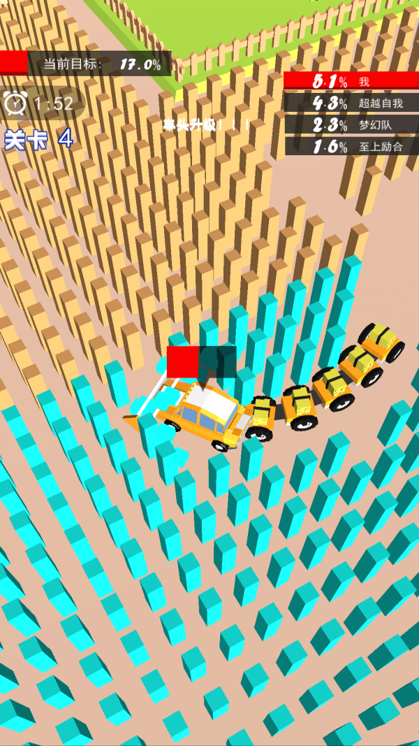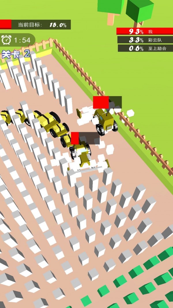 欢乐农场大战是一款农作物收割l类游戏。游戏画面采用经典的像素风打造它是一款手机上的好玩的模拟动物手游,玩家需要操控许多辆收割机,看看自己能不能扩大自己的领地范围,玩起来很是刺激有趣,画面非常的简约,玩家可以自由的在这里进行pk,还是可以和全球的玩家一起进行竞技,解锁新的工具来进行收割,收获更多的奖励,玩家只要点击屏幕就是可以完成任务,有兴趣的快来下载欢乐农场大战体验吧。